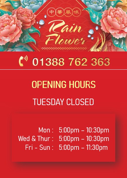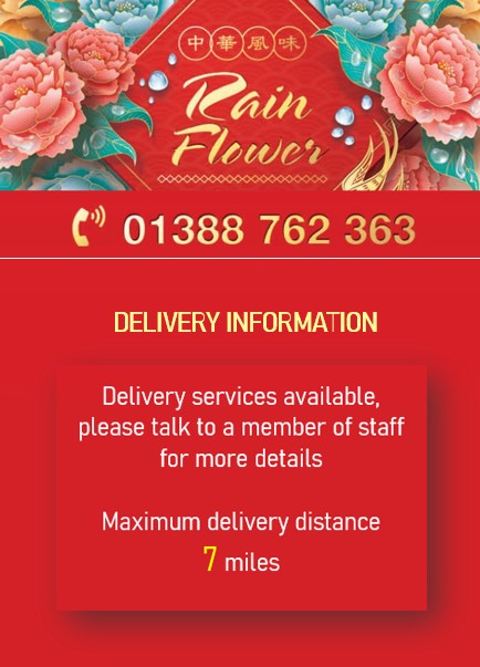 Rainflower @Crook Chinese Takeaway serves variety of delicious Chinese dishes. We’re passionate about delivering hot, great tasting, freshly prepared Chinese food to our customers